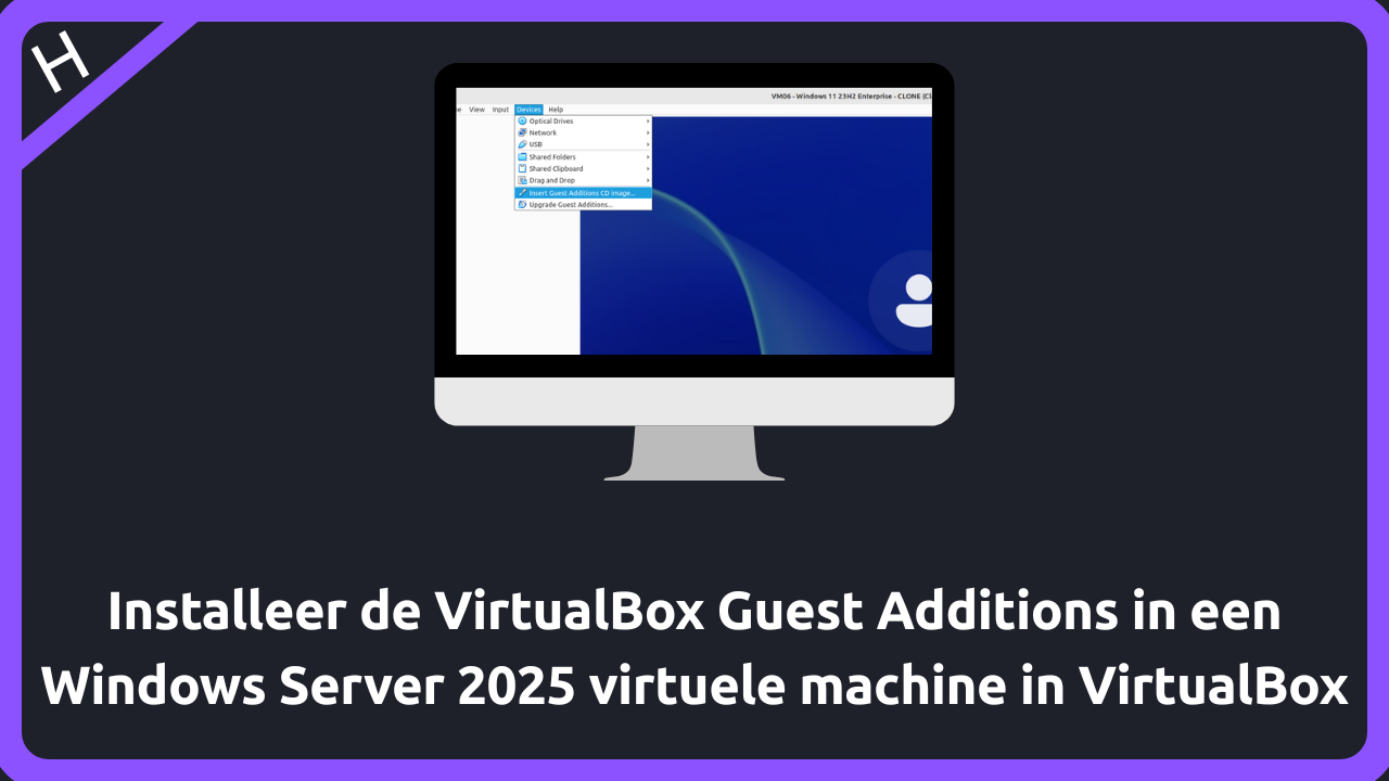 Na de installatie van Windows Server 2025 voorzie je de Guest Additions. Deze zorgen voor de installatie van speciale stuurprogramma's voor de virtuele hardware...