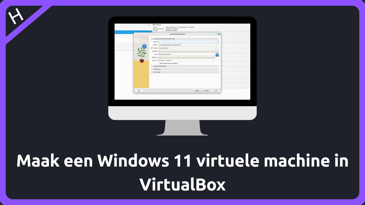 Het aanmaken van een lege virtuele machine (VM) voor Windows 11 omvat het reserveren van virtuele hardware binnen de hypervisor VirtualBox. Je moet de VM een naam geven...