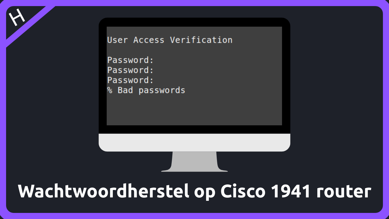 Je doet een wachtwoordherstel op een Cisco 1941 router, wanneer het console-wachtwoord of het enable exec-mode wachtwoord (of beide) verloren of vergeten zijn...