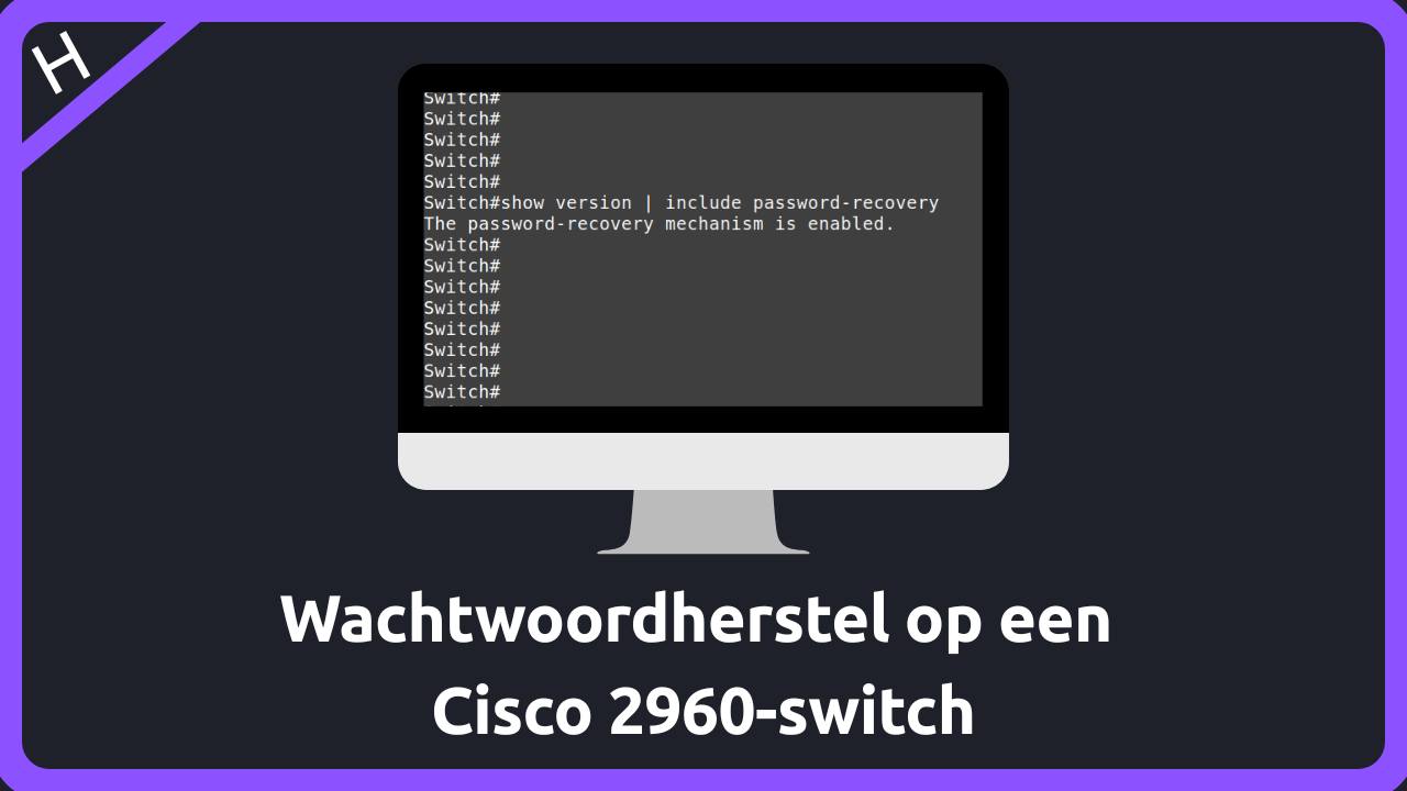 Je doet een wachtwoordherstel op een Cisco Catalyst 2960 switch, wanneer het console-wachtwoord of het enable exec-mode wachtwoord (of beide) verloren of vergeten zijn.
