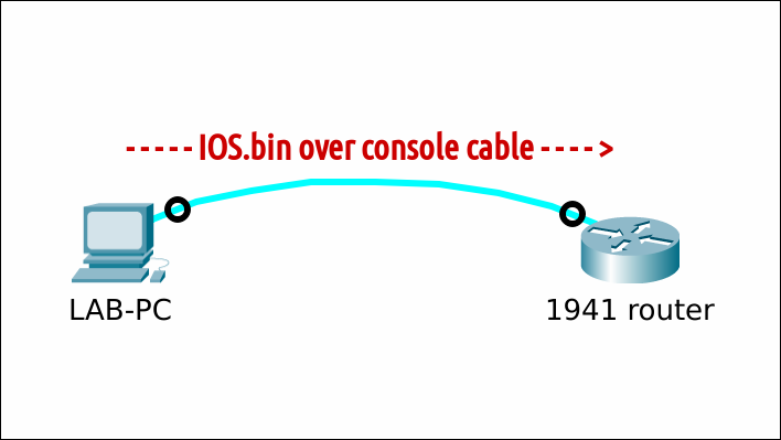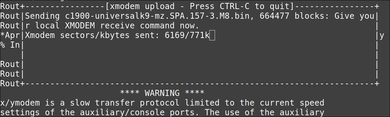In tegenstelling tot een Cisco 2960-switch is het, voor zover ik weet, niet mogelijk om xmodem vanaf de router te gebruiken in ROMMON-mode.