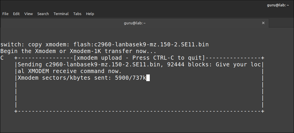 Start een xMODEM-overdracht. De switch vraagt je vervolgens om de overdracht te starten vanuit je terminalemulator.