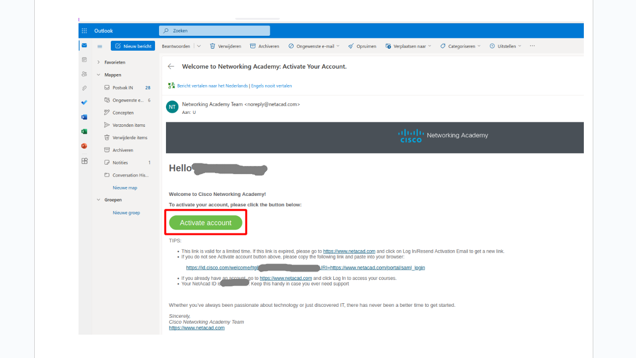 Lid van Cisco Network Academy? Je hebt als het goed is een activeringslink ontvangen in je privé-e-mail. Activeer je account. Mogelijk heb je dit al eerder gedaan. Sla deze stap dan over.